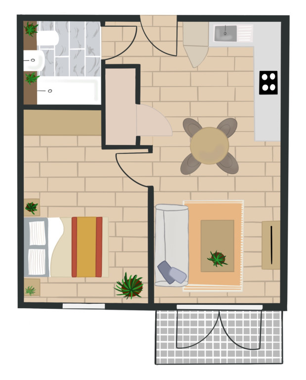 1 Baths • 1 Bed • 1 Bed 517 sqft