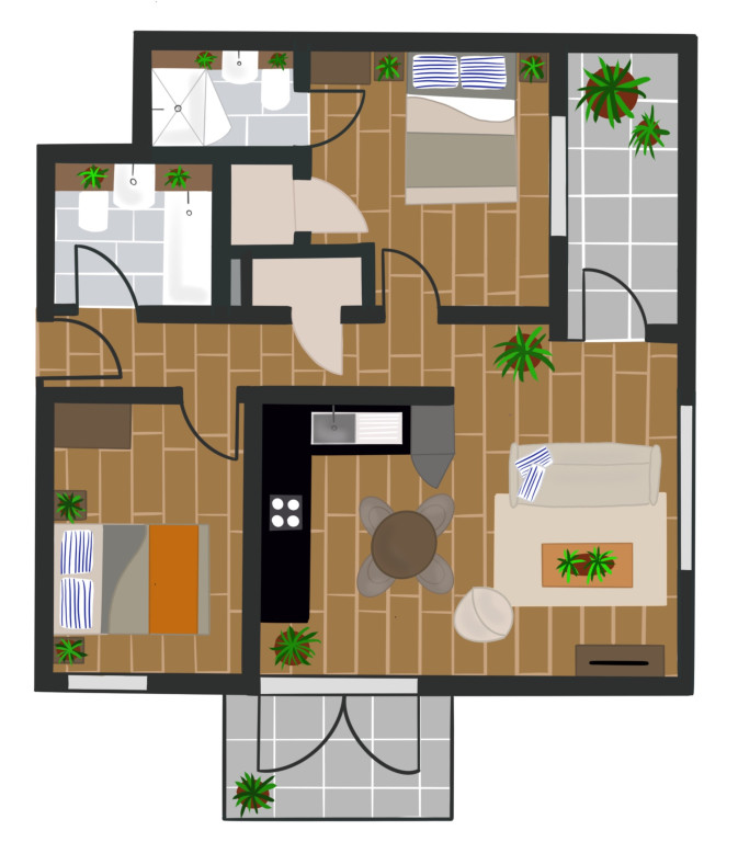 2 Baths • 2 Beds • 2 Beds 721 sqft